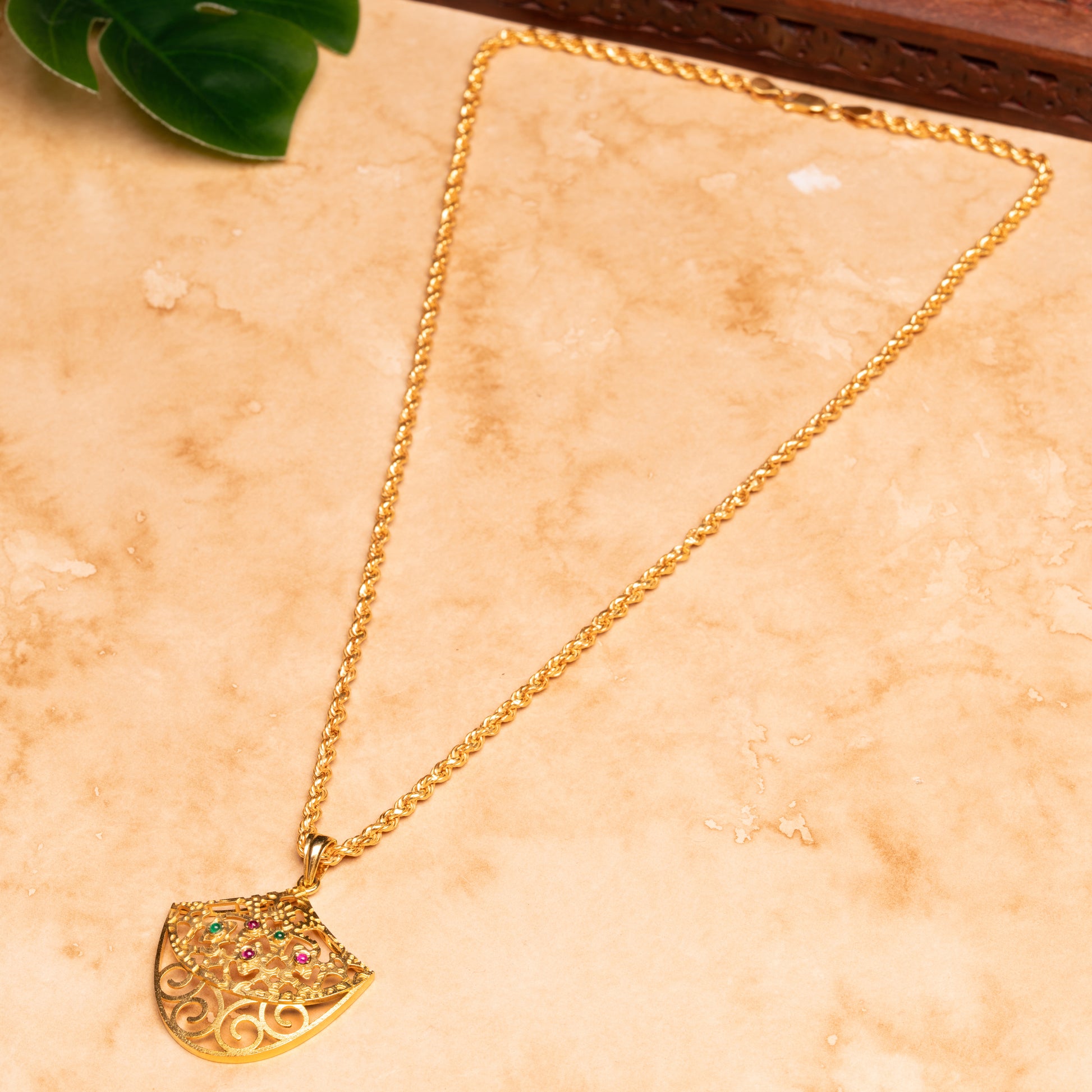 An elegant gold-plated sterling silver pendant designed to make a refined statement. Its sleek, sophisticated form ad...