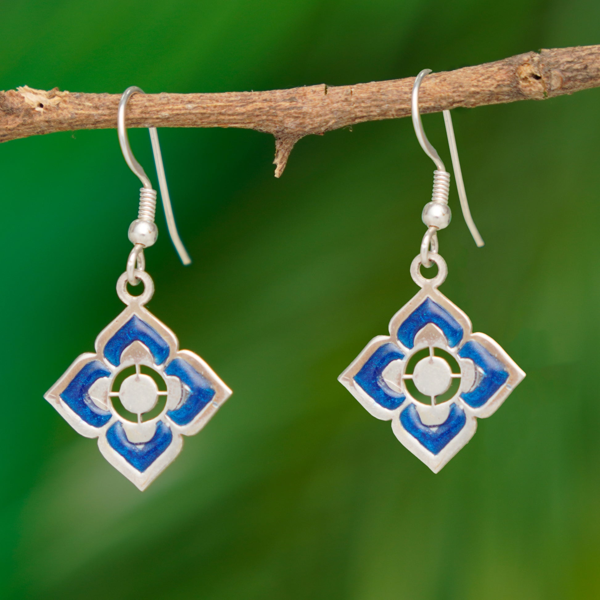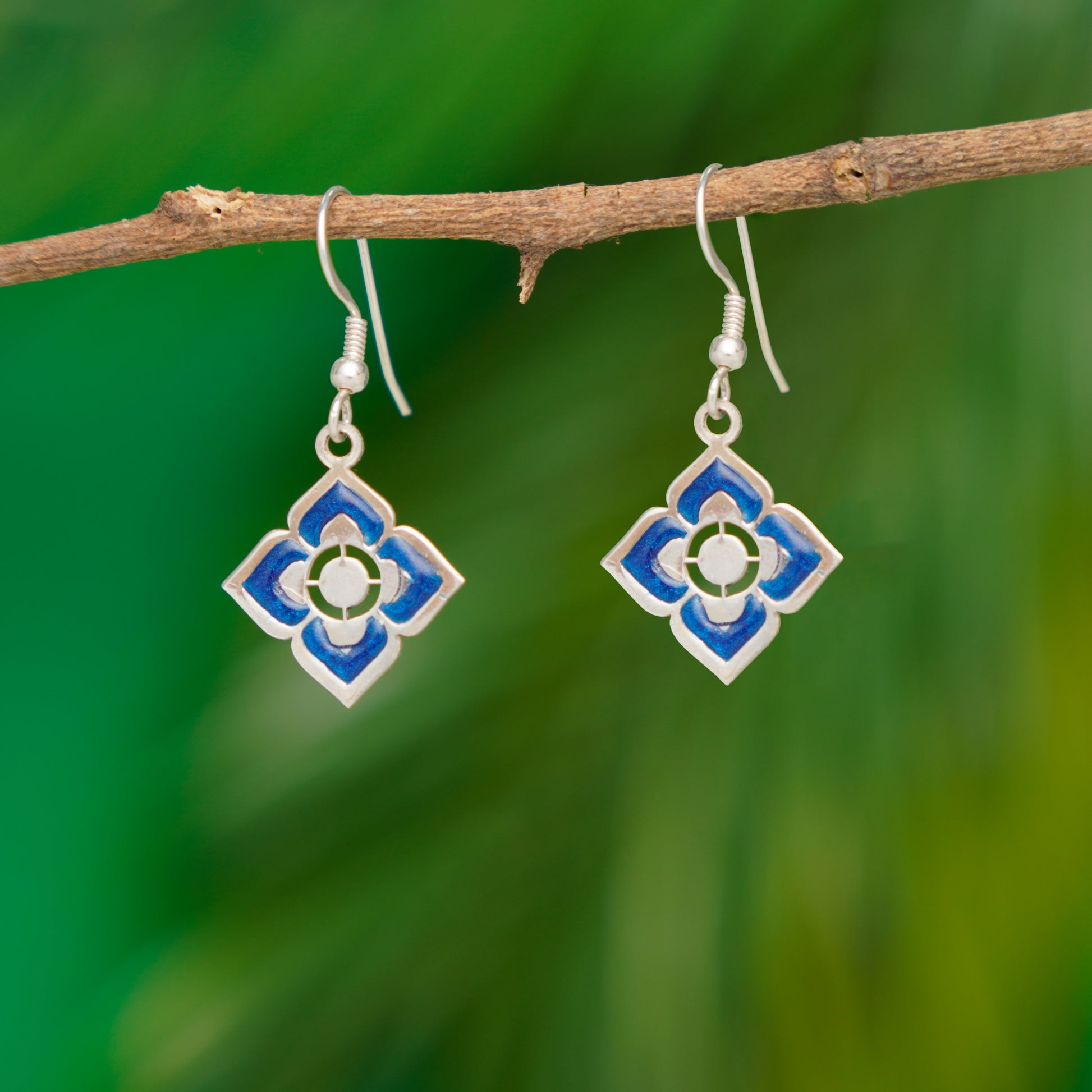 Enamel Blue Petals Silver Earrings