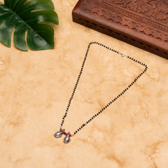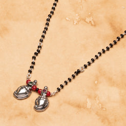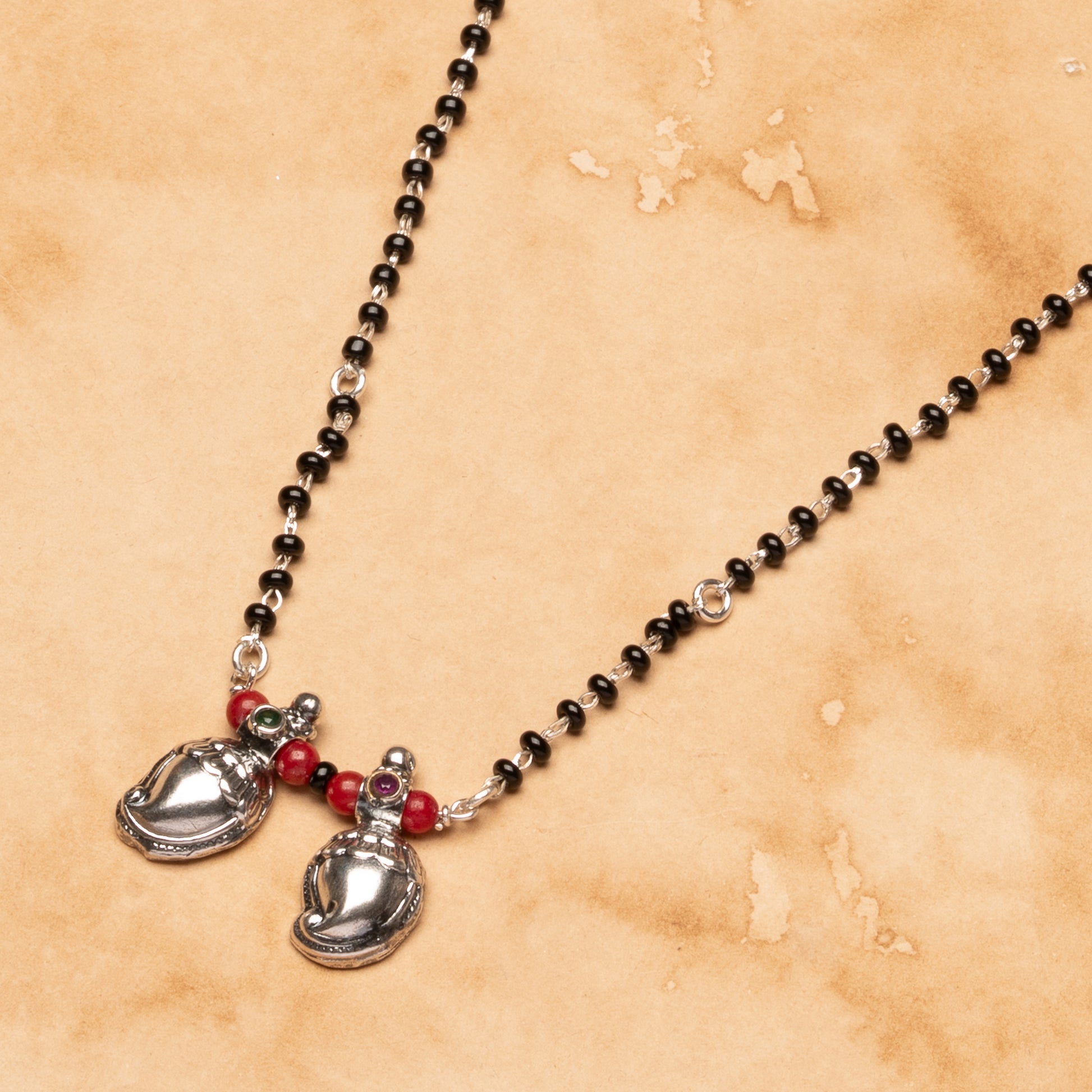 The Keri Wati Silver Mangalsutra features a beautifully handcrafted mango-shaped silver pendant paired with two tradi...