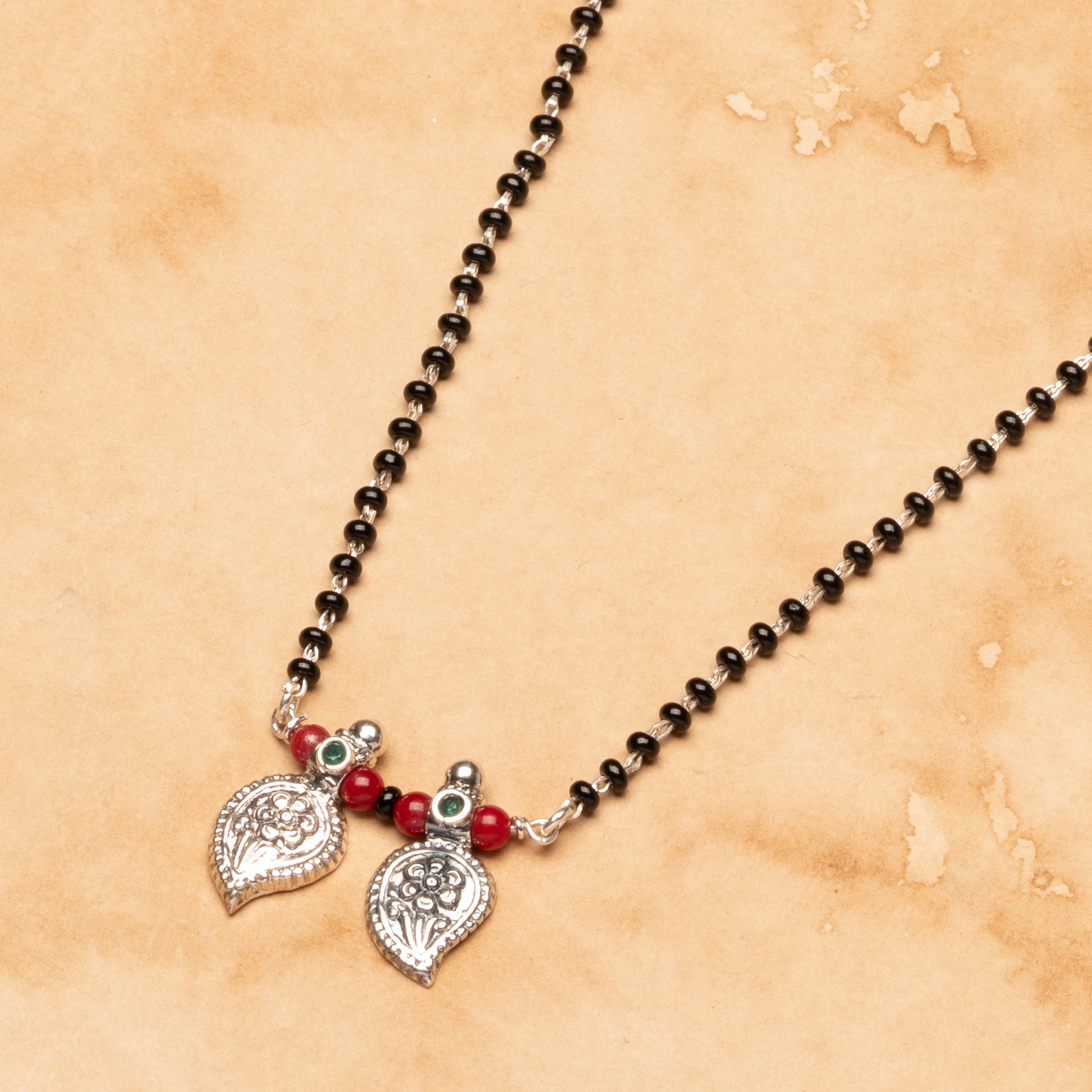 Minimal 925 Silver Two Leaf Pendant Mangalsutra