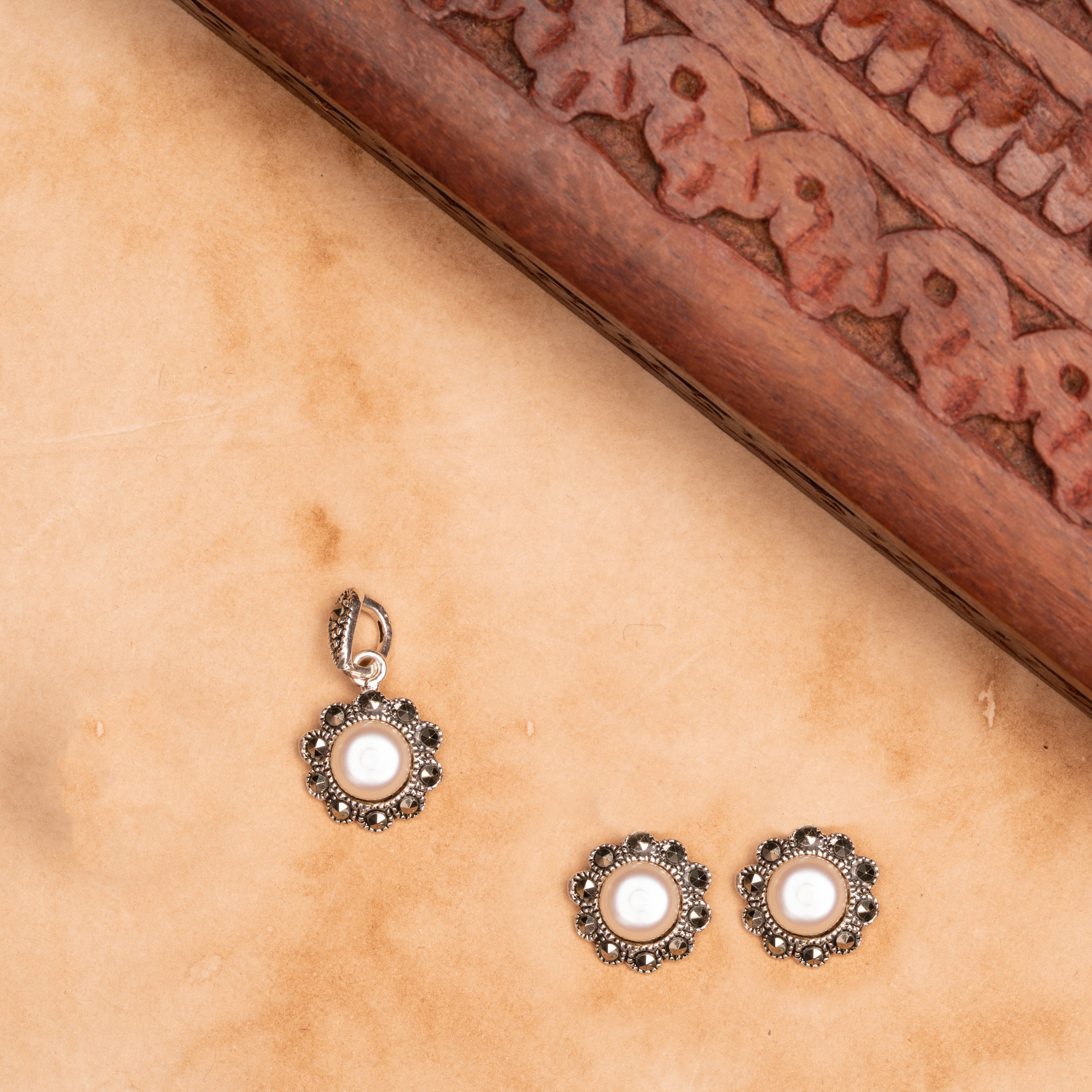 A timeless jewelry set featuring a luminous pearl pendant paired with classic matching earrings. Elegant, refined, and effortlessly chic, this set adds a soft glow to any outfit—perfect for everyday grace or special occasions. (Chain is not included in the price)