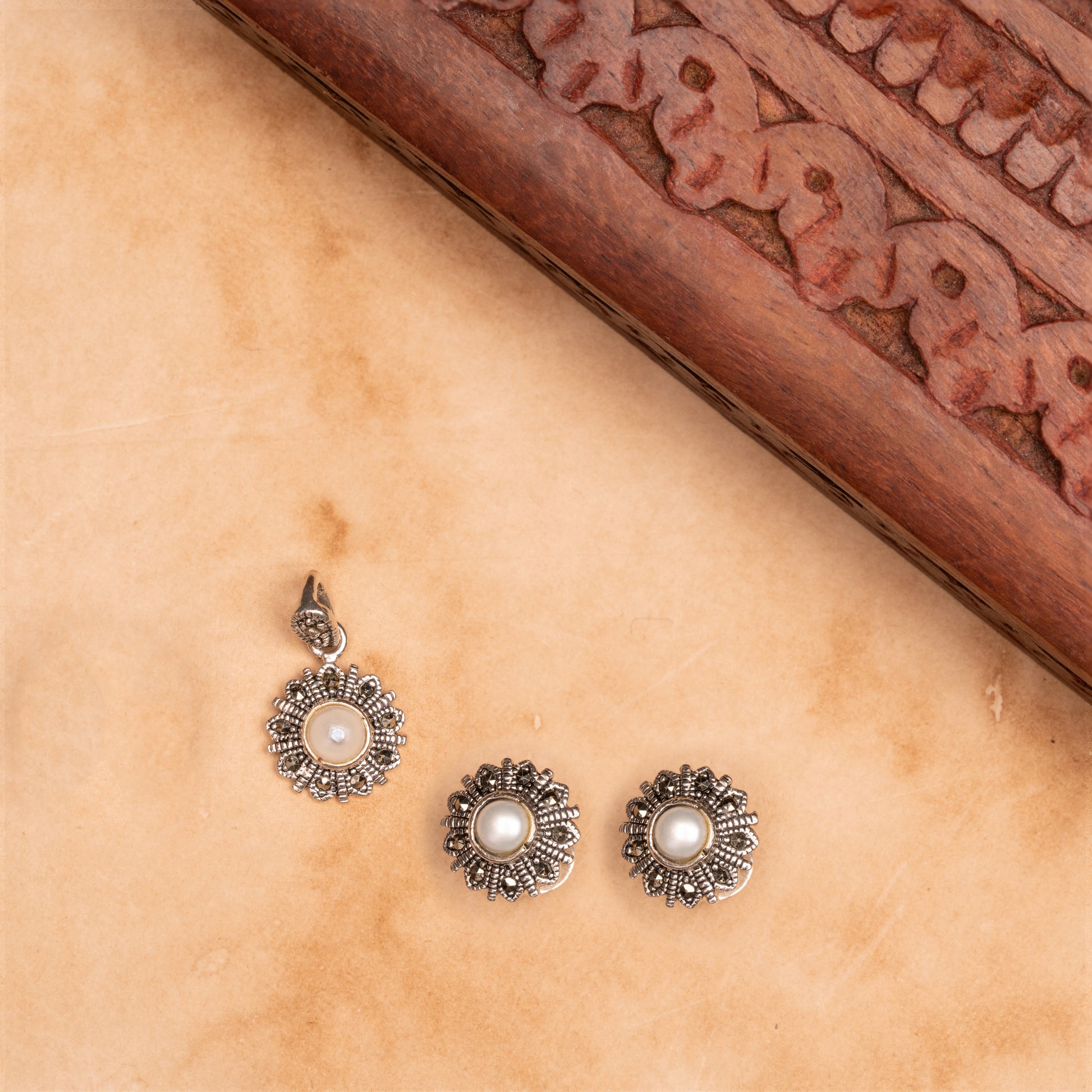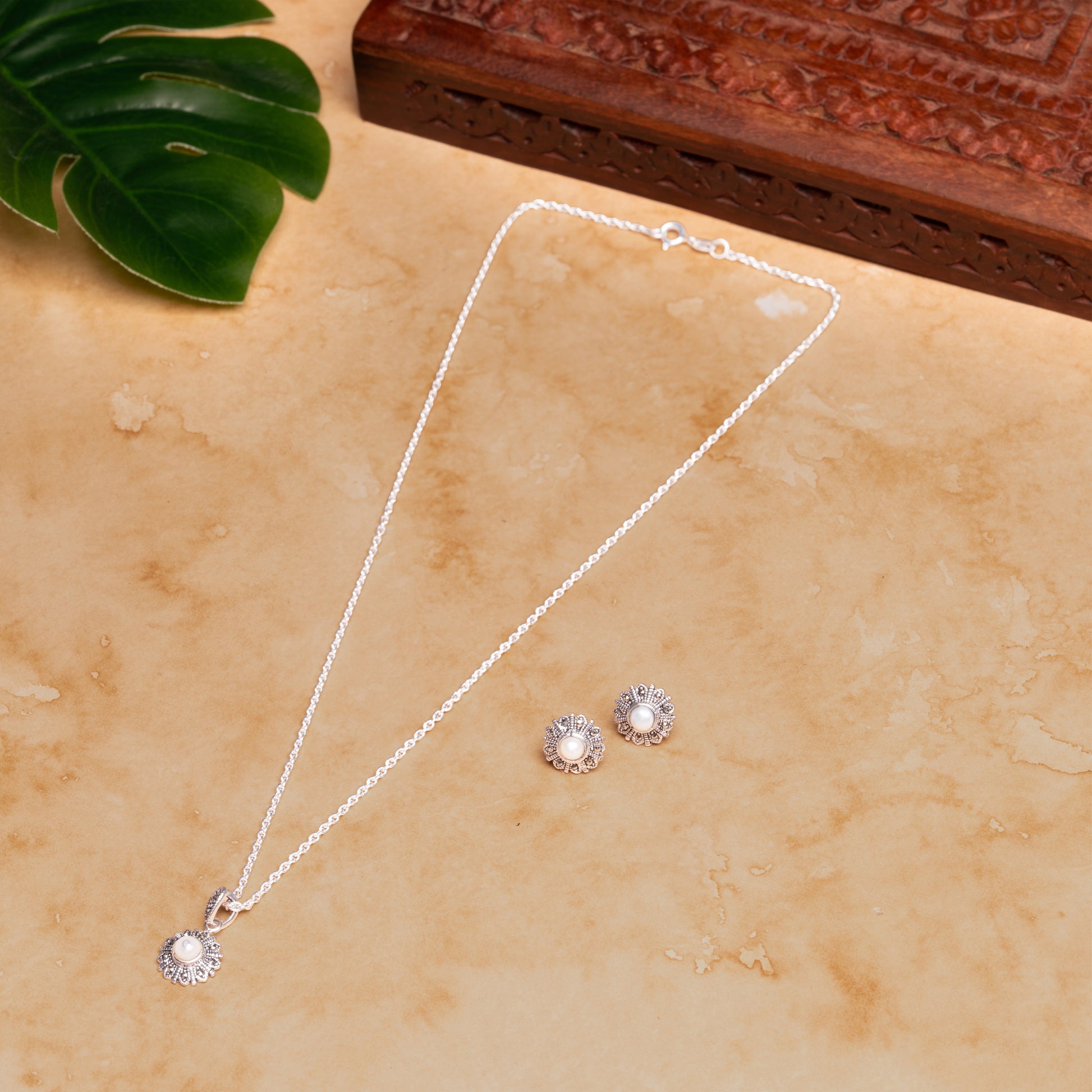 A timeless jewelry set featuring a luminous pearl pendant paired with classic matching earrings. Elegant, refined, an...