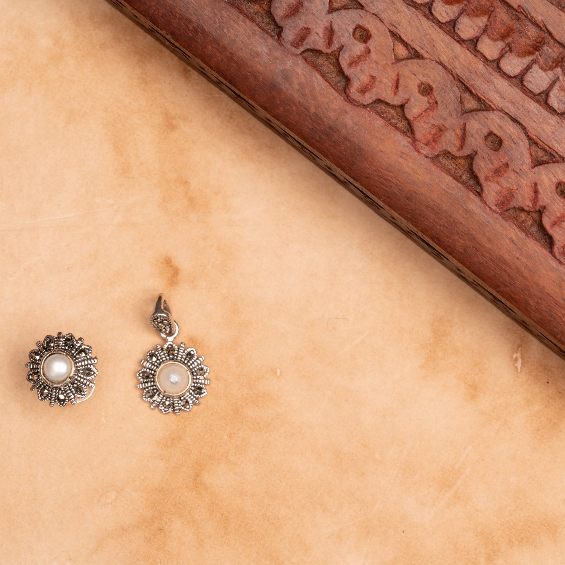A timeless jewelry set featuring a luminous pearl pendant paired with classic matching earrings. Elegant, refined, and effortlessly chic, this set adds a soft glow to any outfit—perfect for everyday grace or special occasions. (Chain is not included in the price)