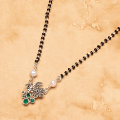 Elevate tradition with a touch of fresh elegance. The Reva Green Stone Mangalsutra is a graceful blend of floral symbolism and modern-day sophistication.